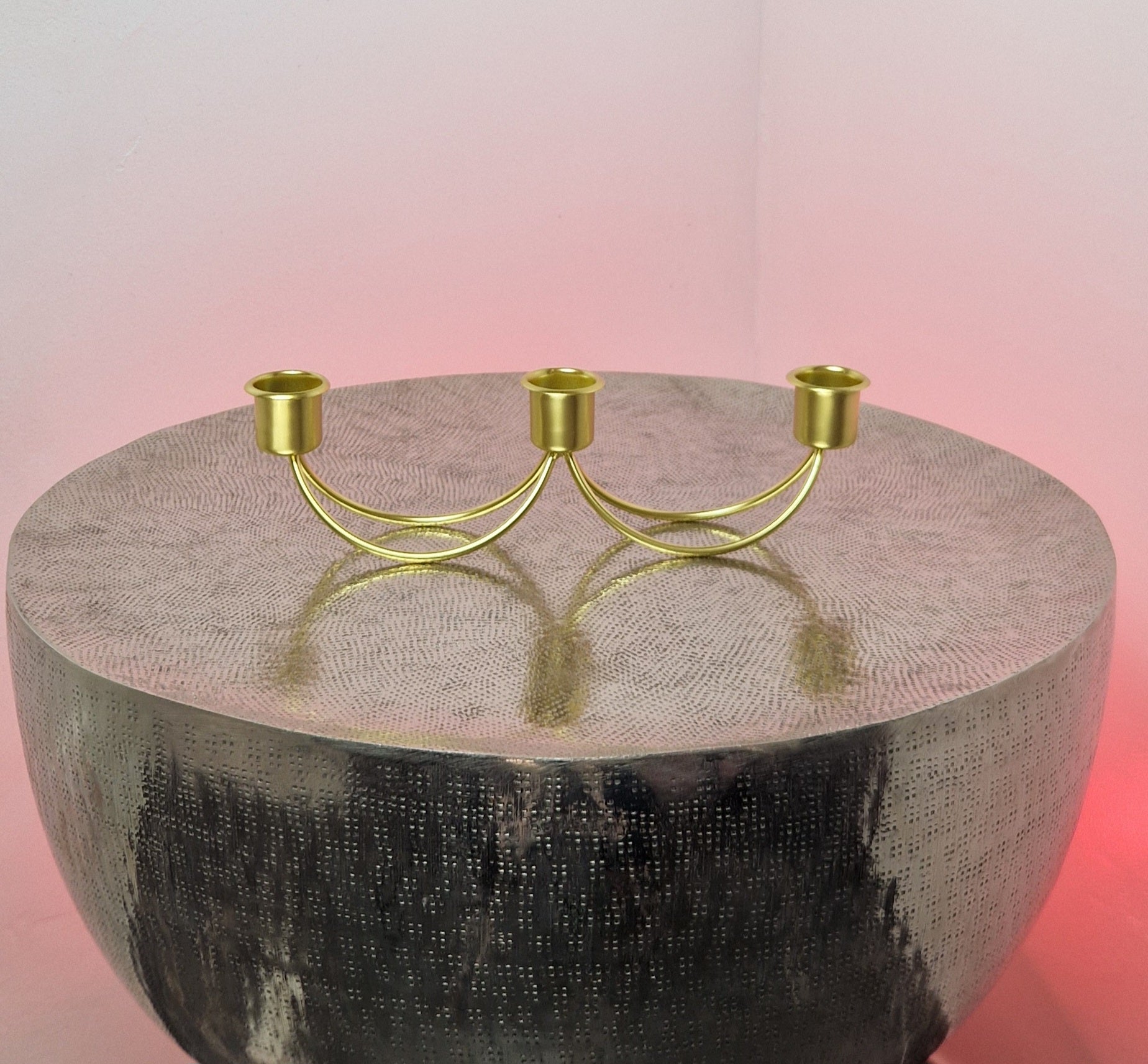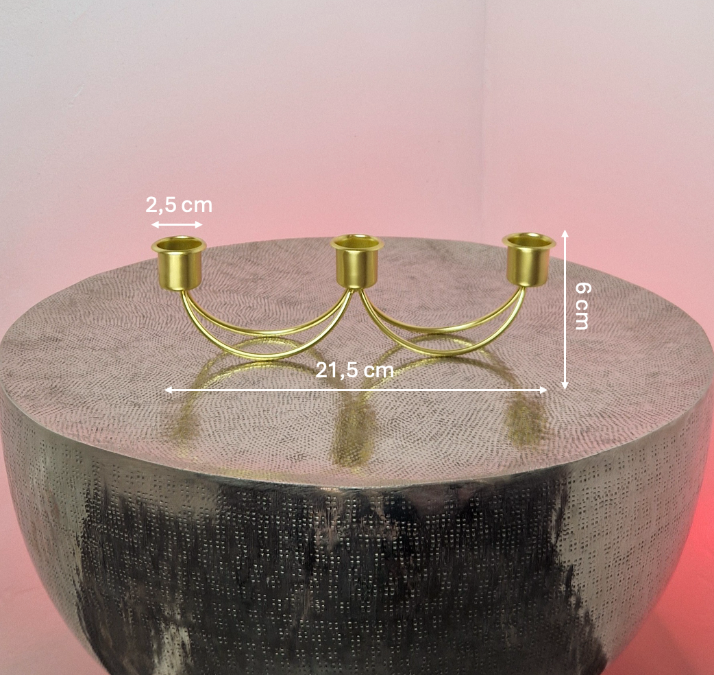 Sublimez votre décoration avec ce candélabre triple en métal doré, un accessoire raffiné qui apporte une