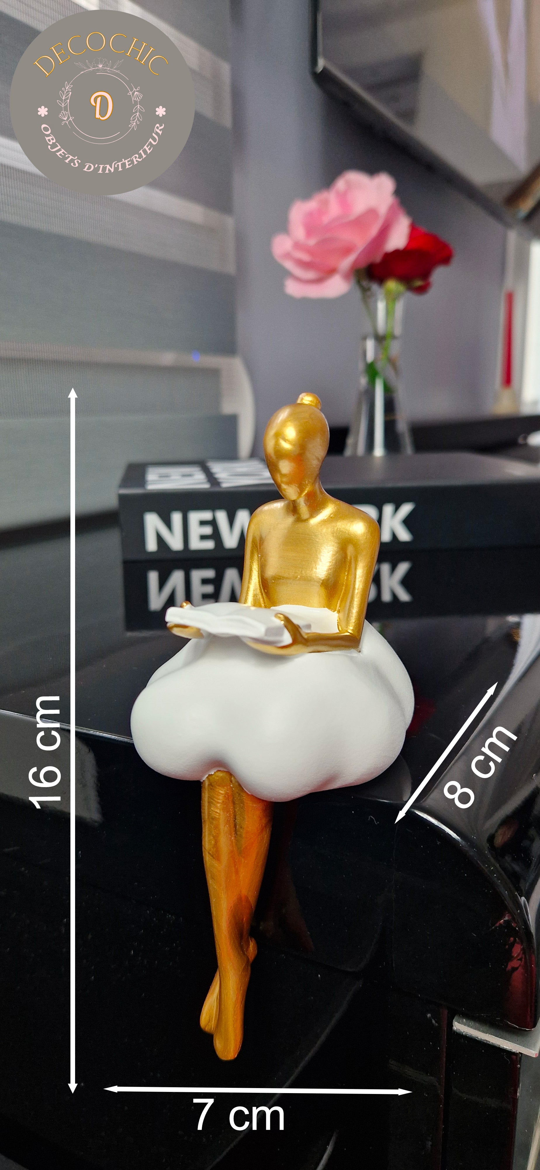 Apportez une touche de raffinement et de sérénité à votre intérieur avec cette sculpture en résine représentant une femme stylisée lisant un livre, sa jupe formant un nuage. Son design épuré et poétique en fait une pièce décorative intemporelle, parfaite pour sublimer vos étagères, votre bureau ou votre table basse.