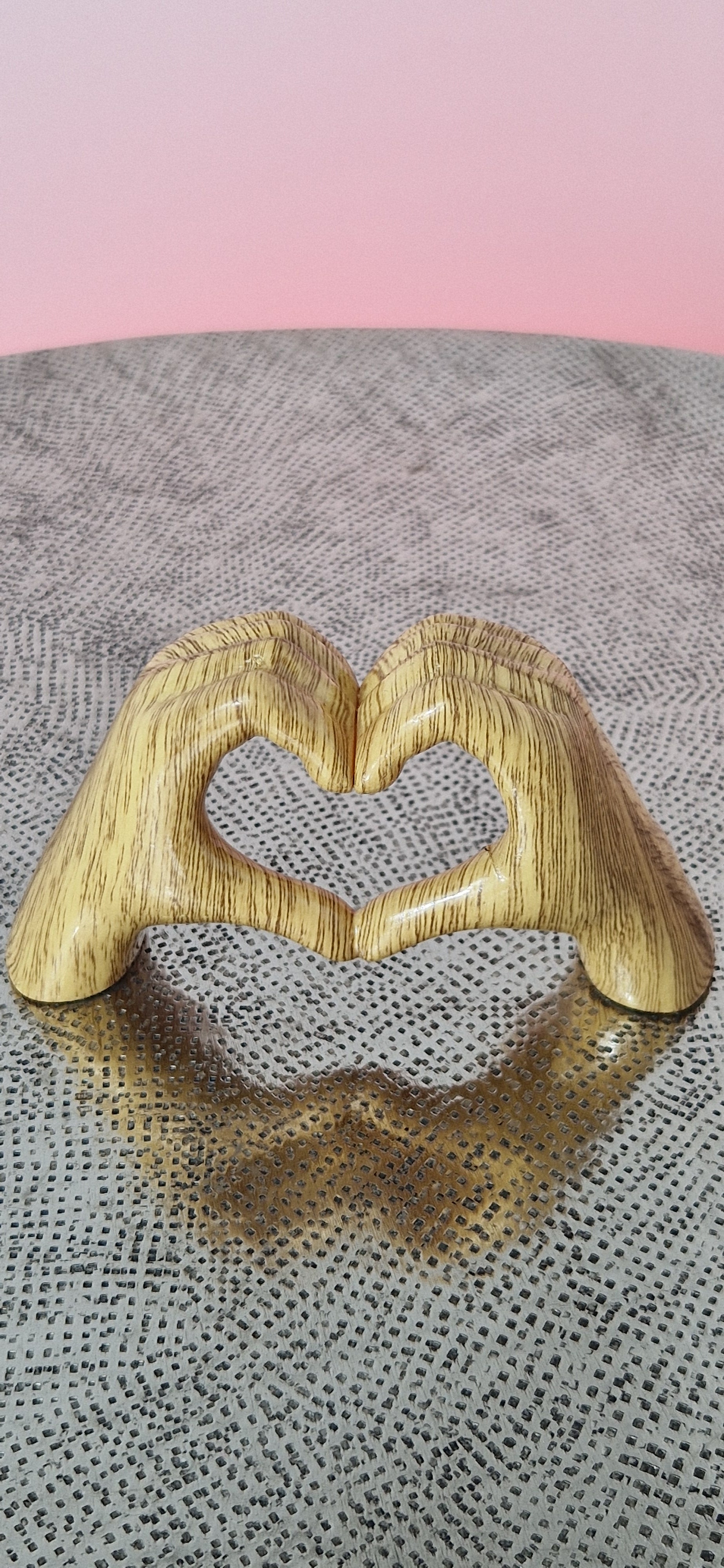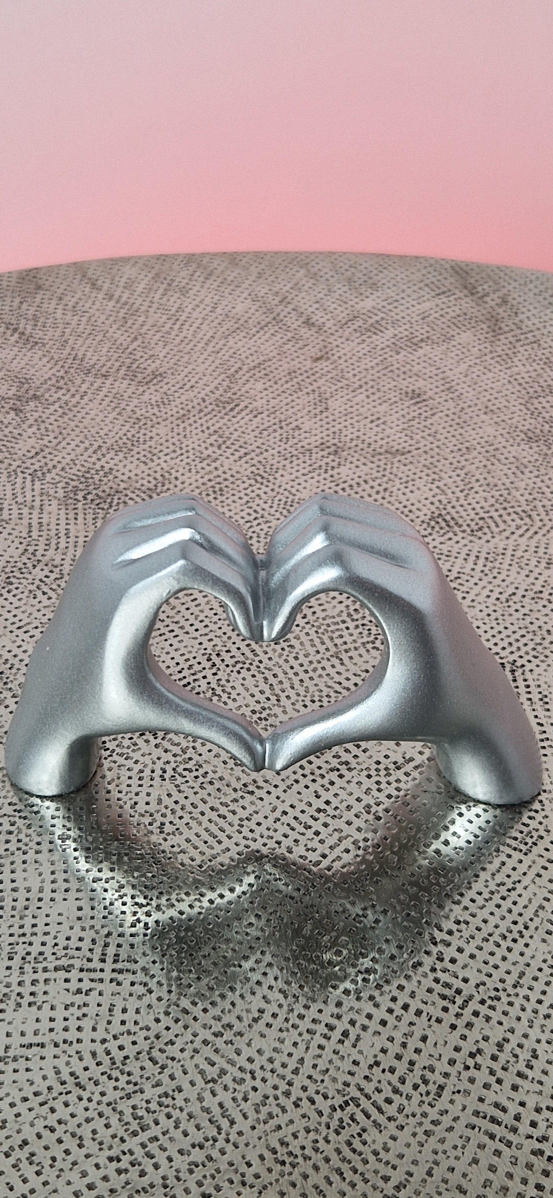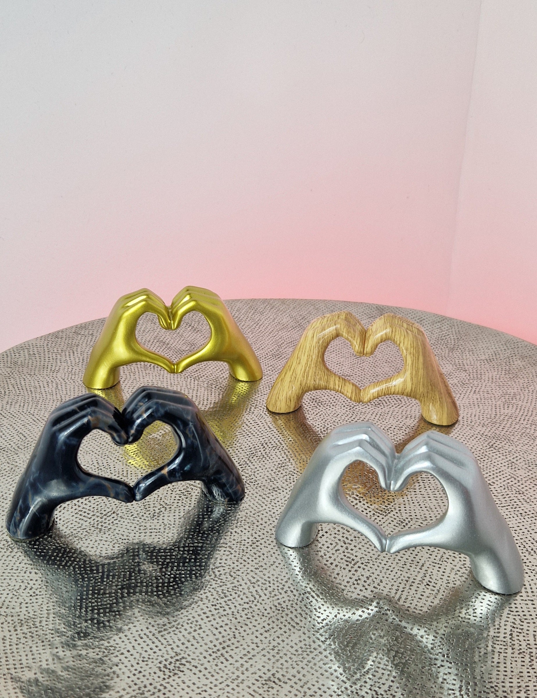 Décorez votre intérieur avec cette sculpture en résine en forme de mains formant un cœur, disponible en